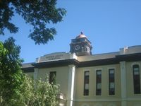 Closeup view of the Bastrop County Courthouse, located across from the Roman Catholic Church in Bastrop