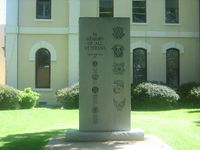 Obelisk commemorating Bastrop County soldiers in the army of the Confederate States of America is located on the courthouse grounds.