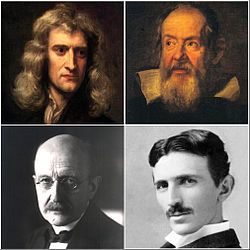 | جاليليو جاليلي (1564–1642) | كان فيلسوف وفيزيائى وعالم رياضيات وعالم فلكى إيطالي ولعب دور في الثورة العلمية من انجازاته تحسينات على التلسكوب والملاحظات الفلكية المستمرة وتأييده للكوبرنيكوسيه. جاليليو لقب أبو الفيزياء الحديثة وابو العلوم وابو العلوم الحديثة. ستيفن هوكينج قال عنه: "جاليليو، يمكن أكثر من شخص آخر، كان المسؤول عن ميلاد العلم الحديث." نشر نظرية كوبرنيكوس ودافع عنها بقوة على أسس فيزيائية، فقام أولا بإثبات خطأ نظرية أرسطو حول الحركة، وقام بذلك عن طريق الملاحظة والتجربة. حاولت الكنيسة من خلالها فرض رقابة على الحركة العلمية، مما أدى إلى إدانة جاليليو جاليلي سنة 1633، الذي دافع عن نظرية مركزية الشمس، قائلاً أنها لا تعارض ما ورد في النصوص الدينية.[76] | |
