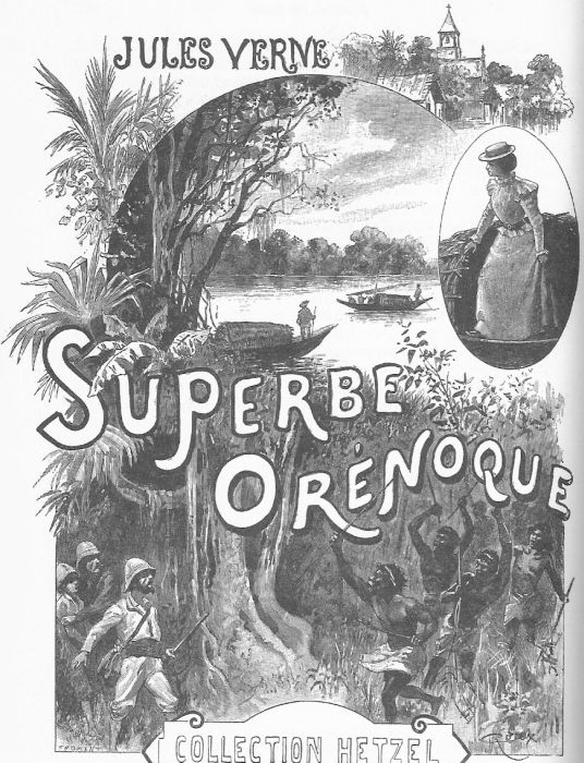 Polski: Ilustracja powieści Juliusza Verne'a "Wspaniałe Orinoko" autorstwa George'a Rouxa.