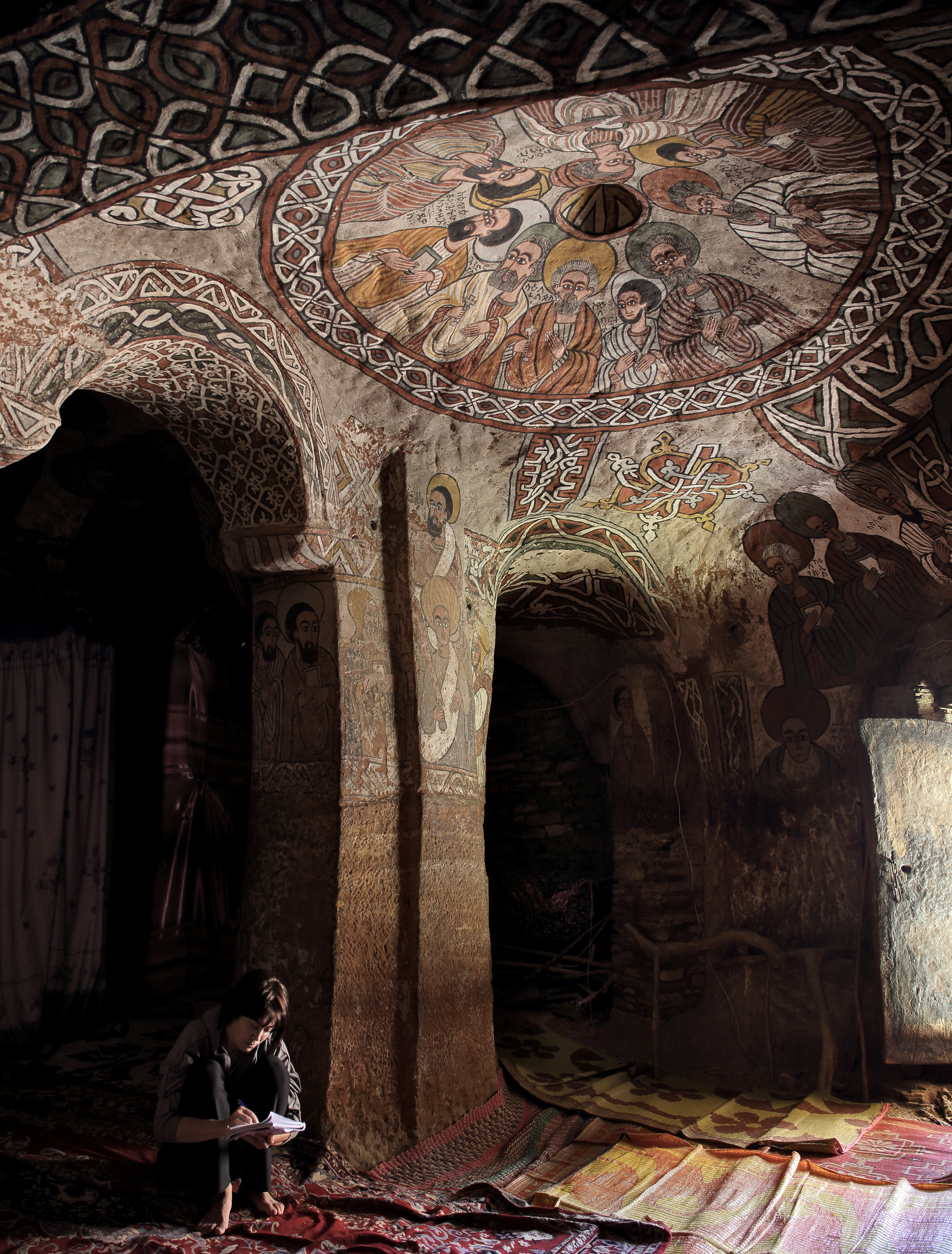 Until now, there have been no scientific publications about this unique temple, because none of the researchers were able to get there. The ascent to the temple is associated with a risk to life: on an almost vertical cliff, it is allowed only barefoot and almost without safety equipment. English: Study of the murals of the Abuna Yemata Guh rock hewn church in Tigray district (Ethiopia)