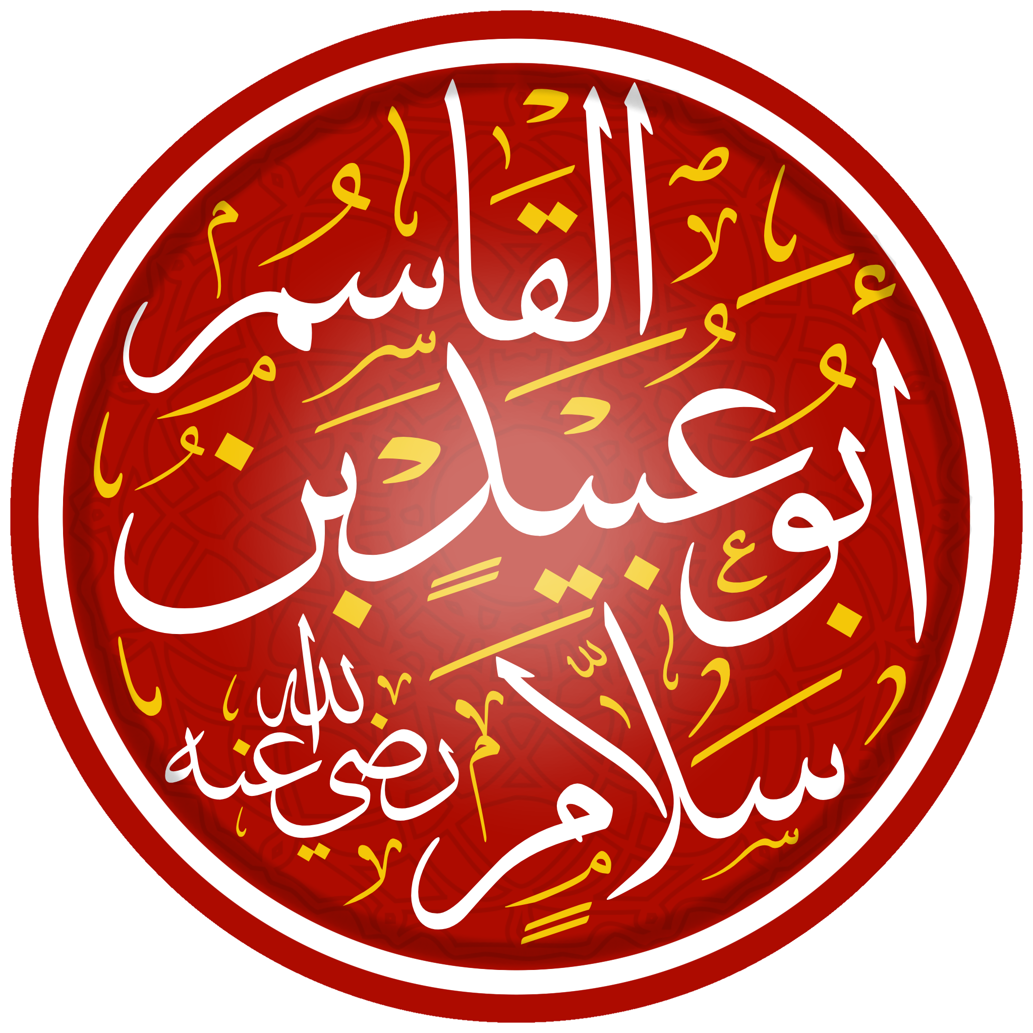 العربية: تخطيط اسم أبو عبيد القاسم بن سلام بخط الثُّلُث العربي، ملحوقًا بالترضي عنه.