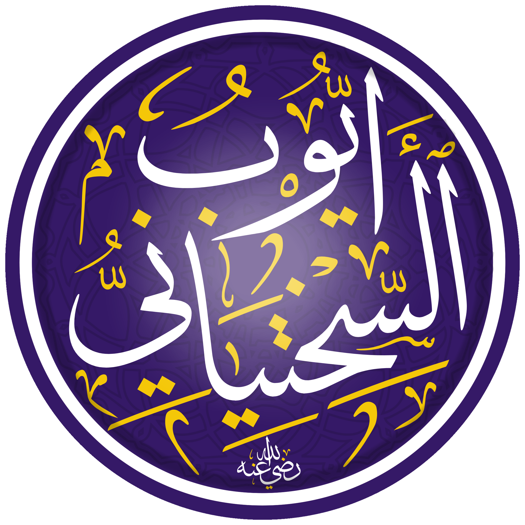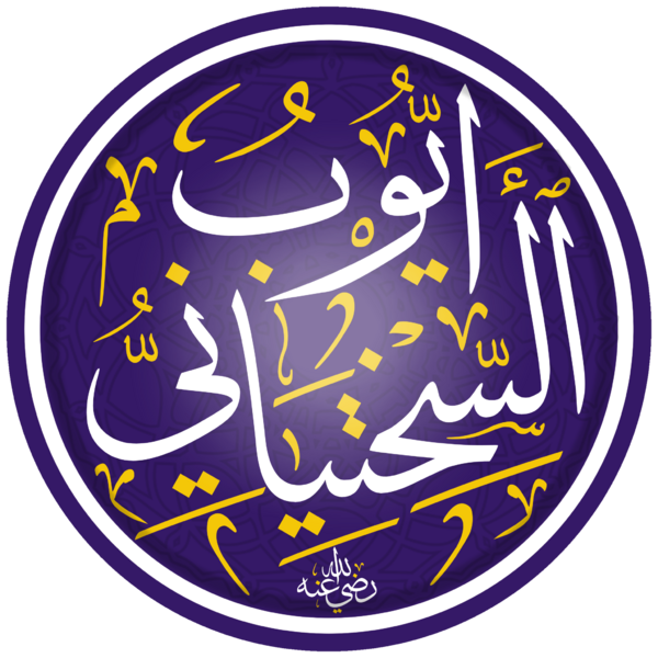 العربية: تخطيط اسم أيوب السختياني بخط الثُّلُث العربي، ملحوقًا بالترضي عنه: «رضي الله عنه».