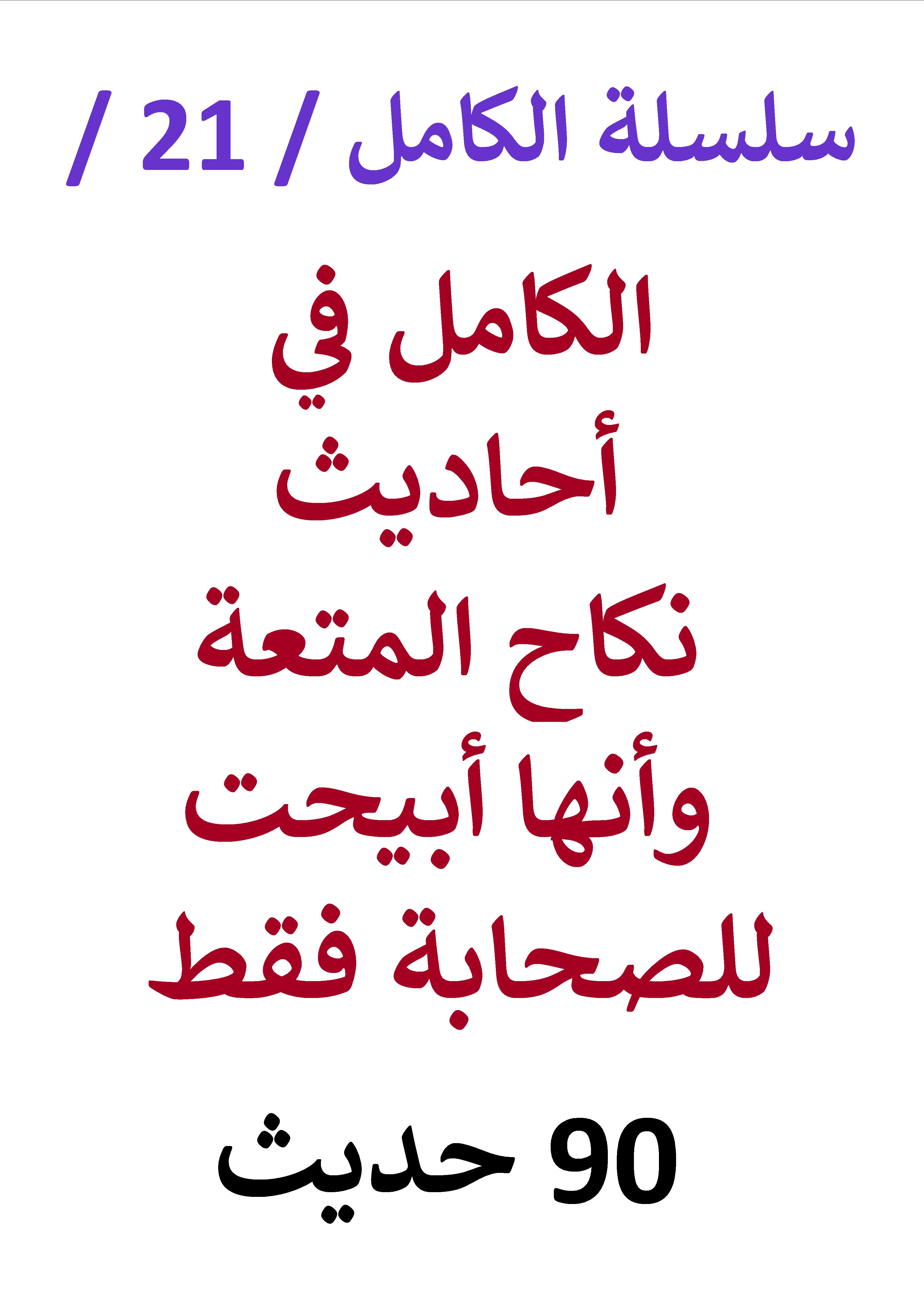 سلسلة الكامل / كتاب رقم 21 / الكامل في أحاديث نكاح المتعة وأنها أبيحت للصحابة فقط ، وما تبع ذلك من أقاويل / ( 90 ) حديث