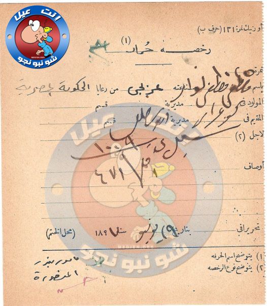 ملف:رخصة قيادة حمار، مصر 1897.jpg