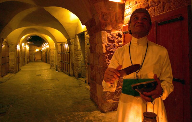 مسحراتي لبناني في مدينة صيدا القديمة، جنوب لبنان.