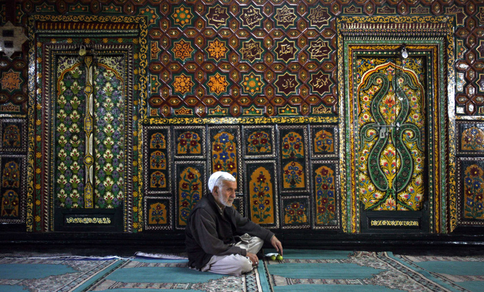 A Kashmiri man rests after performing prayers inside the shrine of Sufi saint, Mir Syed Ali Hamdani, during Ramadan in Srinagar, in Indian-administered Kashmir on September 11, 2008. |