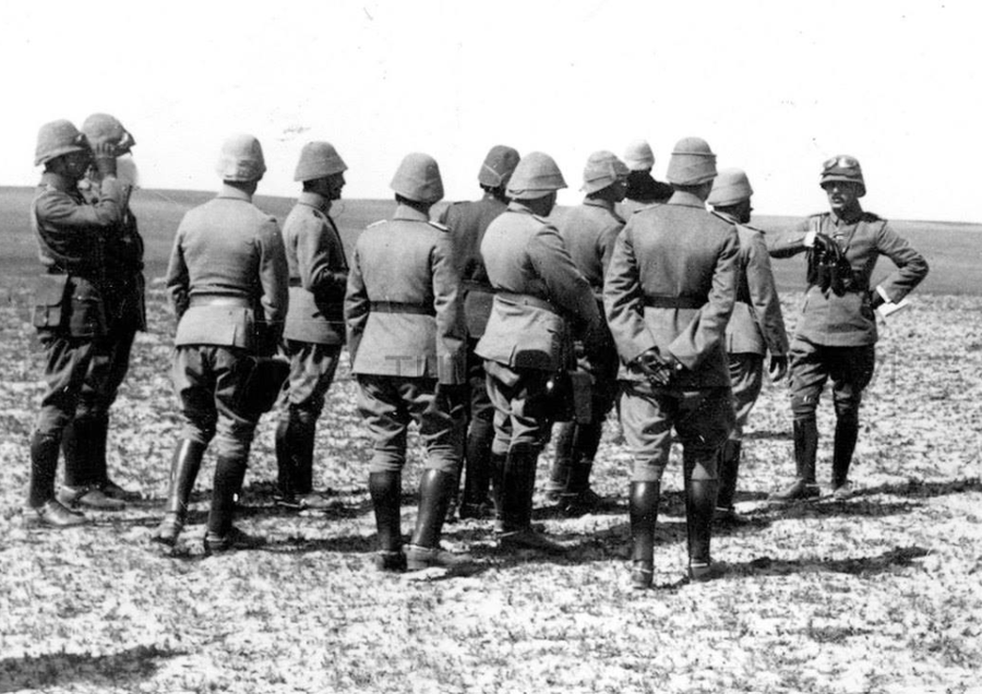 ملف:فون كرس وجمال باشا، تفتيش الجيش الرابع، فلسطين وسوريا، 1916.png