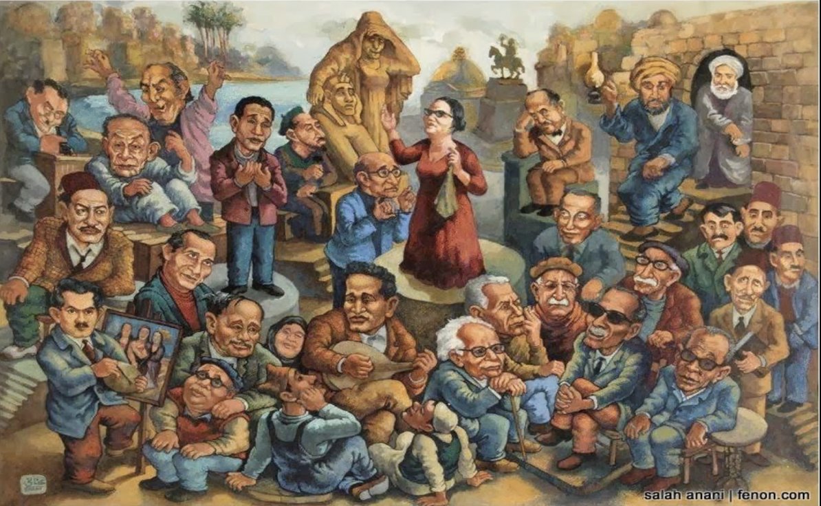 مئة عام من التنوير، بريشة صلاح عناني، بتكليف من وزارة الثقافة، سنة 1995.