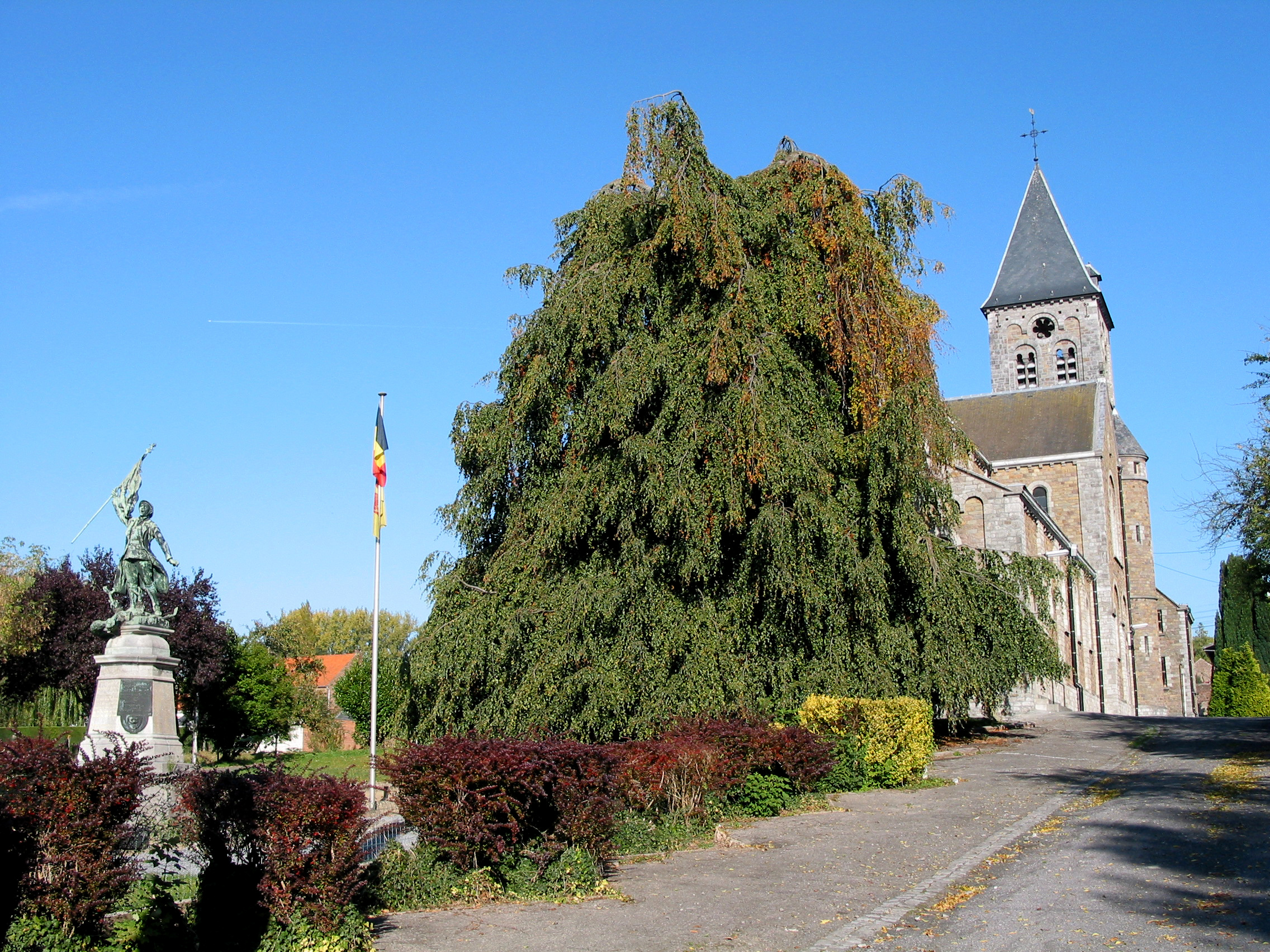 English: Braives (Belgium), the monument to the fallen of the First World War church of the nativity of Our-Lady (1910).