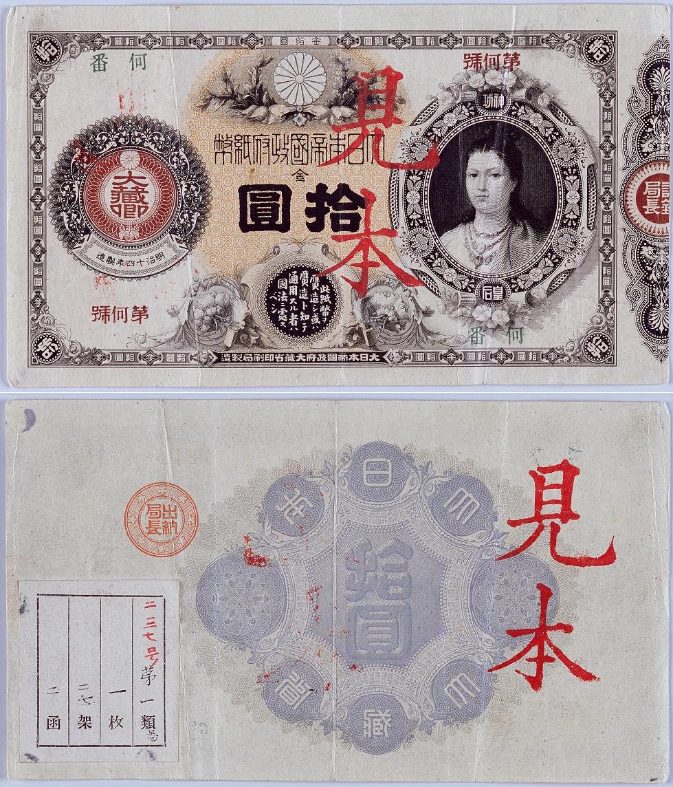 | ⧼wm-license-information-source⧽ | 十円紙幣見本、国立公文書館所蔵。 |