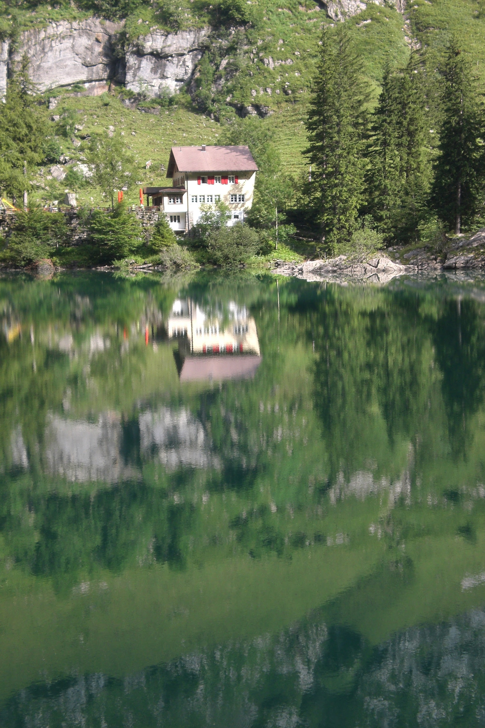 Deutsch: Von der Südseite des Seealpsees blicken wir auf das gegenüberliegende Gasthaus