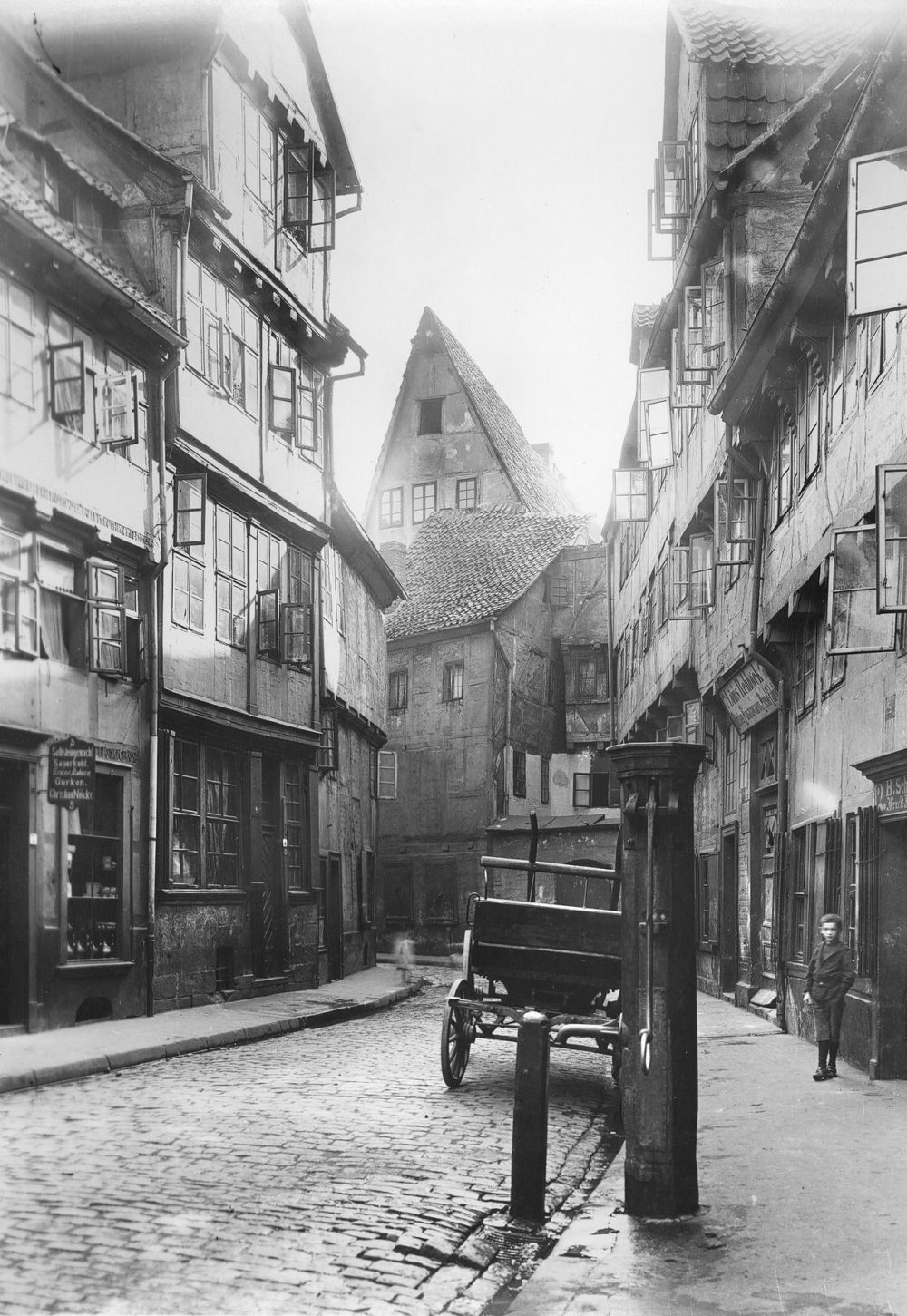 Deutsch: Blick in die historische, nach dem Zweiten Weltkrieg aufgehobene Rademacherstraße in Hannover ...