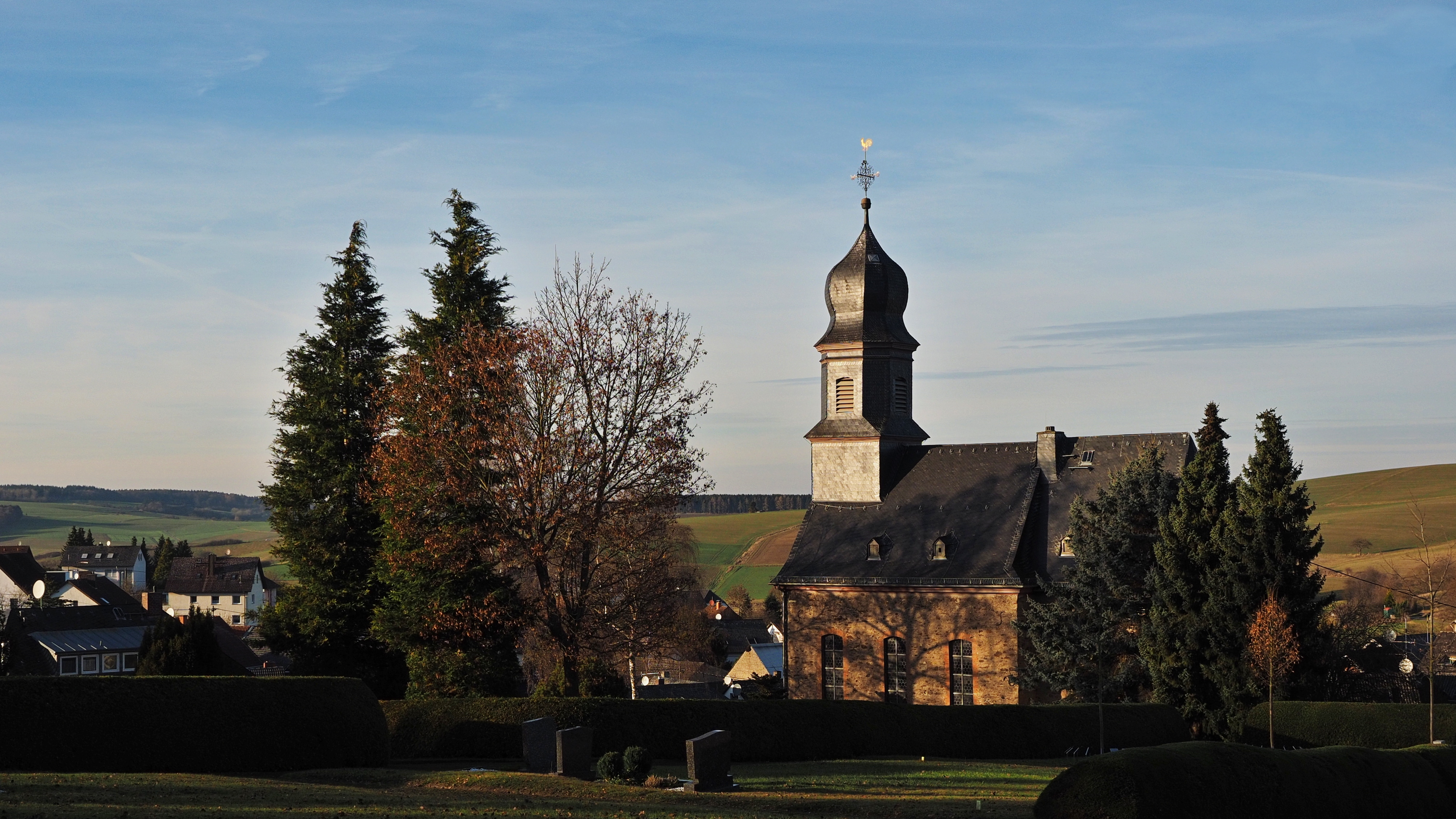English: Church of Steckenroth, Hohenstein, Germany, on a sunny December afternoon