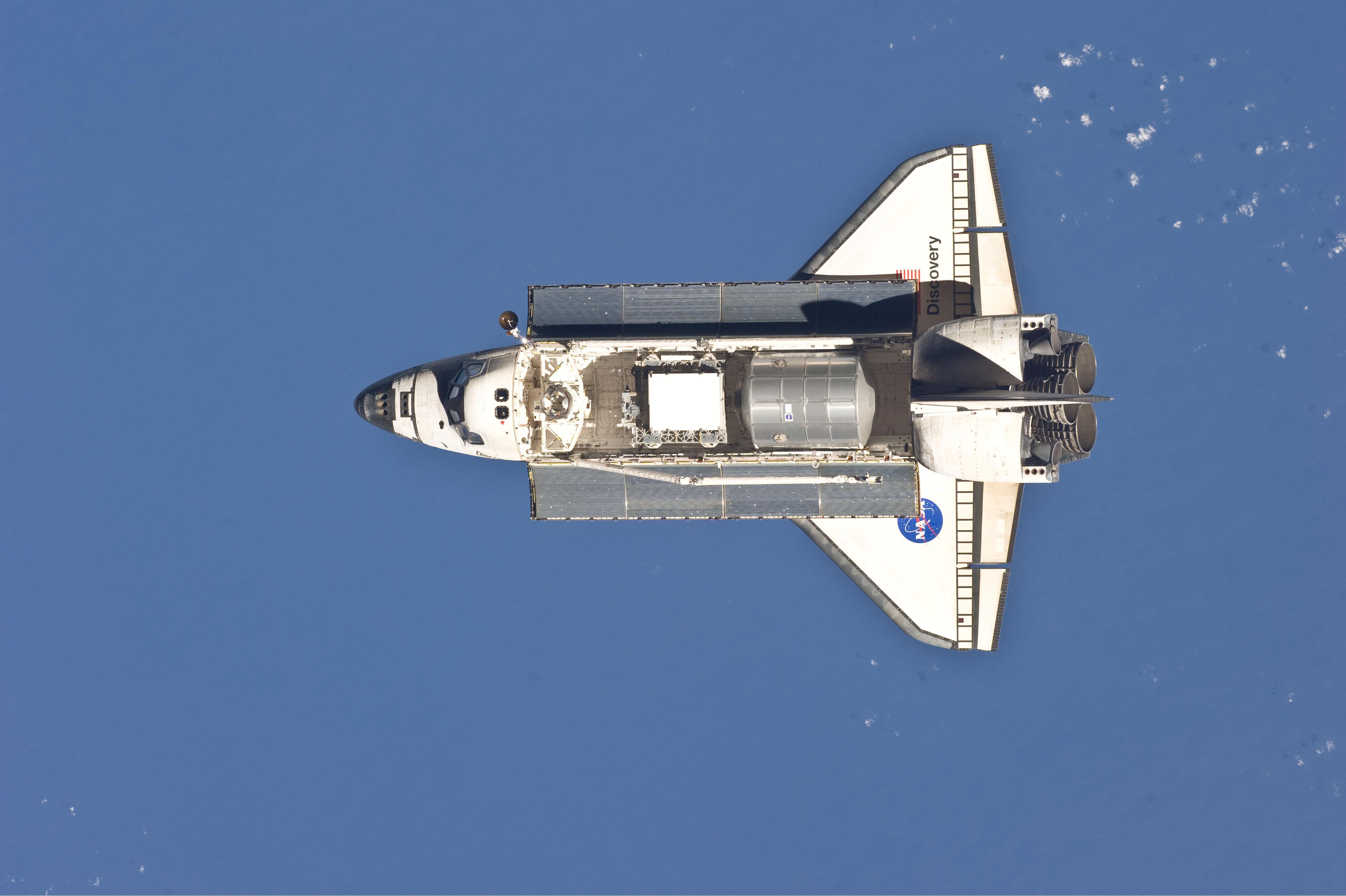 English: Backdropped by a blue and white part of Earth, space shuttle Discovery is featured in this image photographed by an Expedition 26 crew member as the shuttle approaches the International Space Station during STS-133 rendezvous and docking operations. Docking occurred at 2:14 p.m.