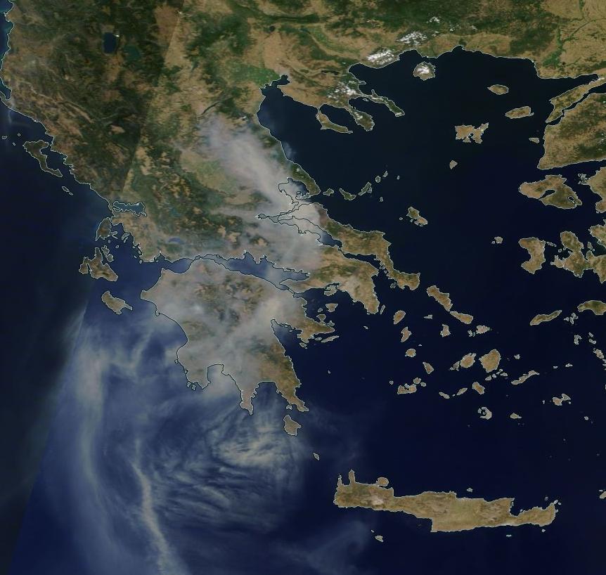 Satelite image from NASA showning wildfires from Greece in 8 August 2021 |