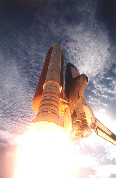English: STS073-S-027 (20 October 1995) --- A 35mm camera captured this low-angle view of the Space Shuttle Columbia as it lifted off from Launch Pad 39B, at the Kennedy Space Center (KSC), to begin a scheduled 16-day mission in Earth-orbit in support of the United States Microgravity Laboratory (USML-2). Five NASA astronauts and two scientists from the private sector were onboard. Liftoff occurred at 9:53:00 a.m. (EDT) on October 20, 1995. The mission represents the 72nd Space Shuttle flight for NASA. The crew will be working around the clock on a diverse assortment of USML-2 experiments located in a science module in Columbia's cargo bay. Fields of study include fluid physics, materials science, biotechnology, combustion science and commercial space processing technologies.