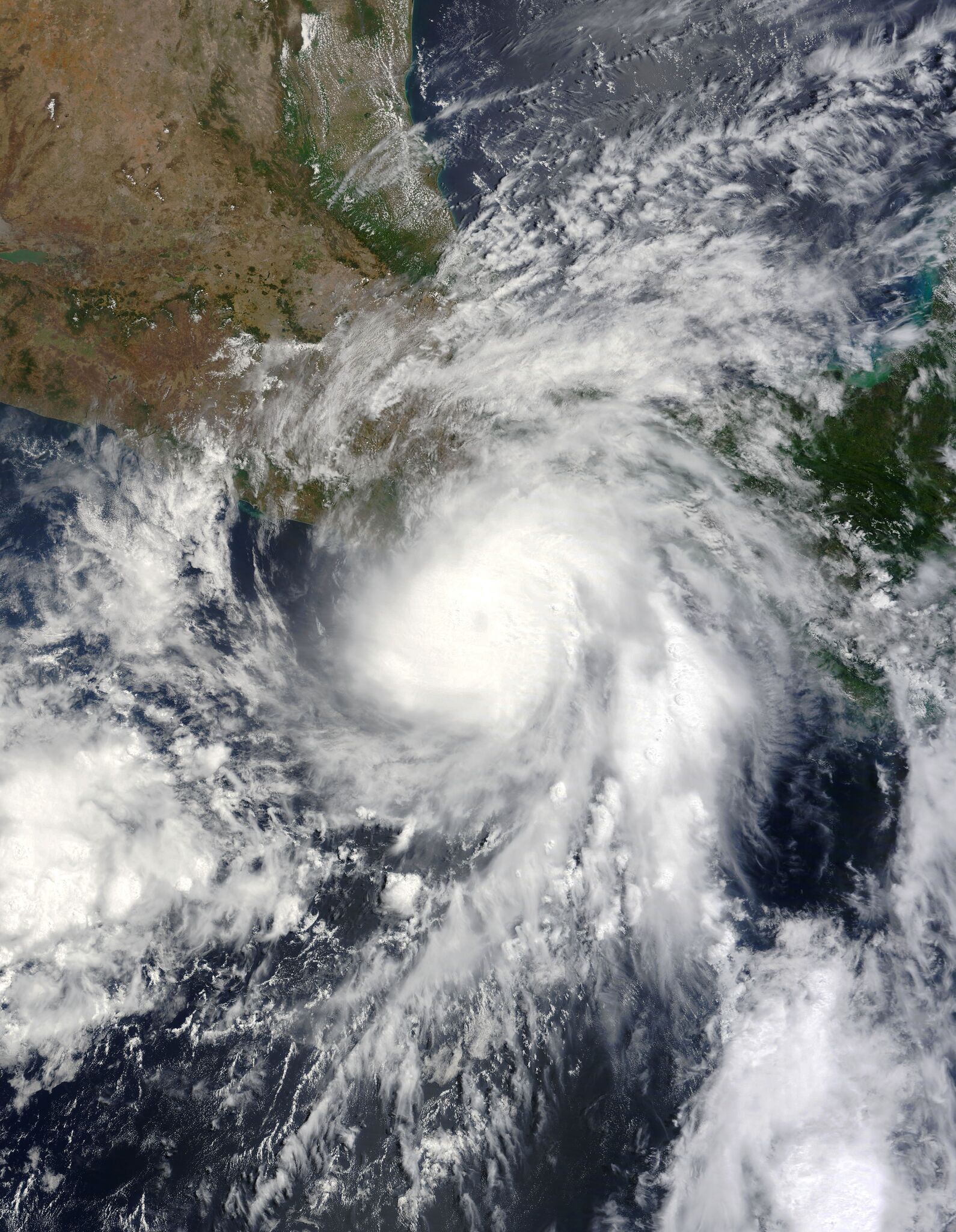 English: Hurricane Agatha shortly before coming off its peak while approaching landfall in Oaxaca on the morning of May 30, 2022.