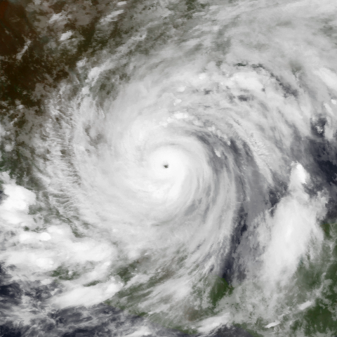English: Hurricane Alex making landfall on Mexico at peak intensity on July 1