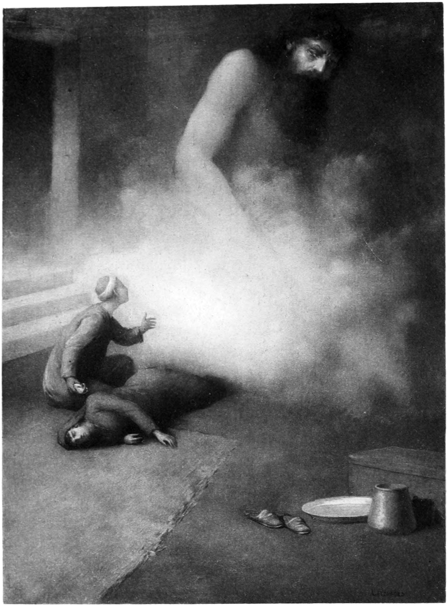 English: Alaeddin; or, The Wonderful Lamp — She had only began when appeared to her one of the Jánn … she fell to the ground oppressed by her affright.