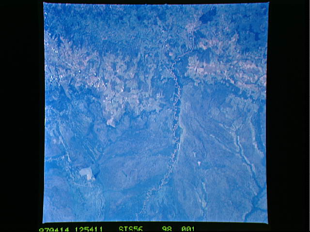 Brasil, Rio São Lourenço. Imagem obtida no site da NASA. Ponto central da imagem: Latitude: -16.5 Longitude: -55.5 Data: 19930414 (YYYYMMDD)GMT Time: 125411 (HHMMSS) Citação: Image Science and Analysis Laboratory, NASA-Johnson Space Center. 25 Mar. 2005. "Astronaut Photography of Earth - Display Record." <http://eol.jsc.nasa.gov/scripts/sseop/photo.pl?mission=STS056&roll=98&frame=1> (29 Dez. 2005).