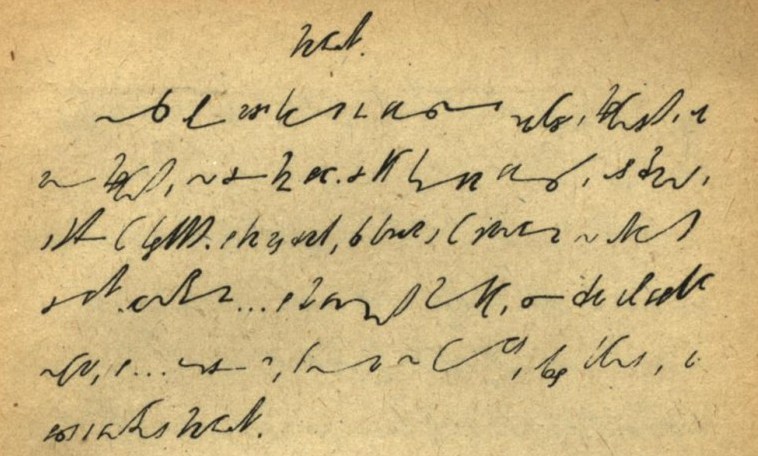 English: 1-st paragraph of the story of the Boleslav Prus "The waistcoat" written in shorthand of Barbara Balczynska