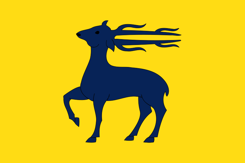 Español: Bandera de Cervelló, Barcelona, España. Bandera apaisada, de proporciones dos de alto por tres de largo, amarilla, con el ciervo azul oscuro del escudo, de altura 2/6 de la del paño, en el centro.[2]