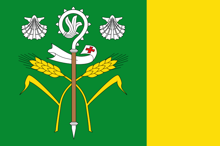 Español: Bandera de Lourenzá (Galicia). Paño verde con el consabido báculo y el velo abacial, resaltado de las dos espigas amarillas dispuestas en aspa, y flanqueado en lo alto de las dos veneras blancas, terciado al batiente de amarillo."[1] Referencias