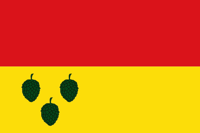 Español: Bandera de la Quart, Barcelona, España. Bandera de proporciones 2:3, bicolor horizontal rojo y amarillo, con las tres piñas verde oscuro del escudo, cada una de altura 3/14 de la del paño y de anchura 2/21 de la largura del mismo paño, la primera puesta a 3/56 del comienzo de la segunda mitad horizontal del paño y a 3/28 del borde del asta; la segunda, a la misma distancia de la divisoria del paño y a 2/21 de la primera; la tercera, a 3/56 del borde inferior y 17/84 de la del asta.[3][4]