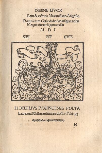 Heinrich Bebel - Coat of Arms as poeta laureatus Source: Opuscula 1508 http://www.uni-mannheim.de/mateo/camena/bebel1/jpg/s153.html