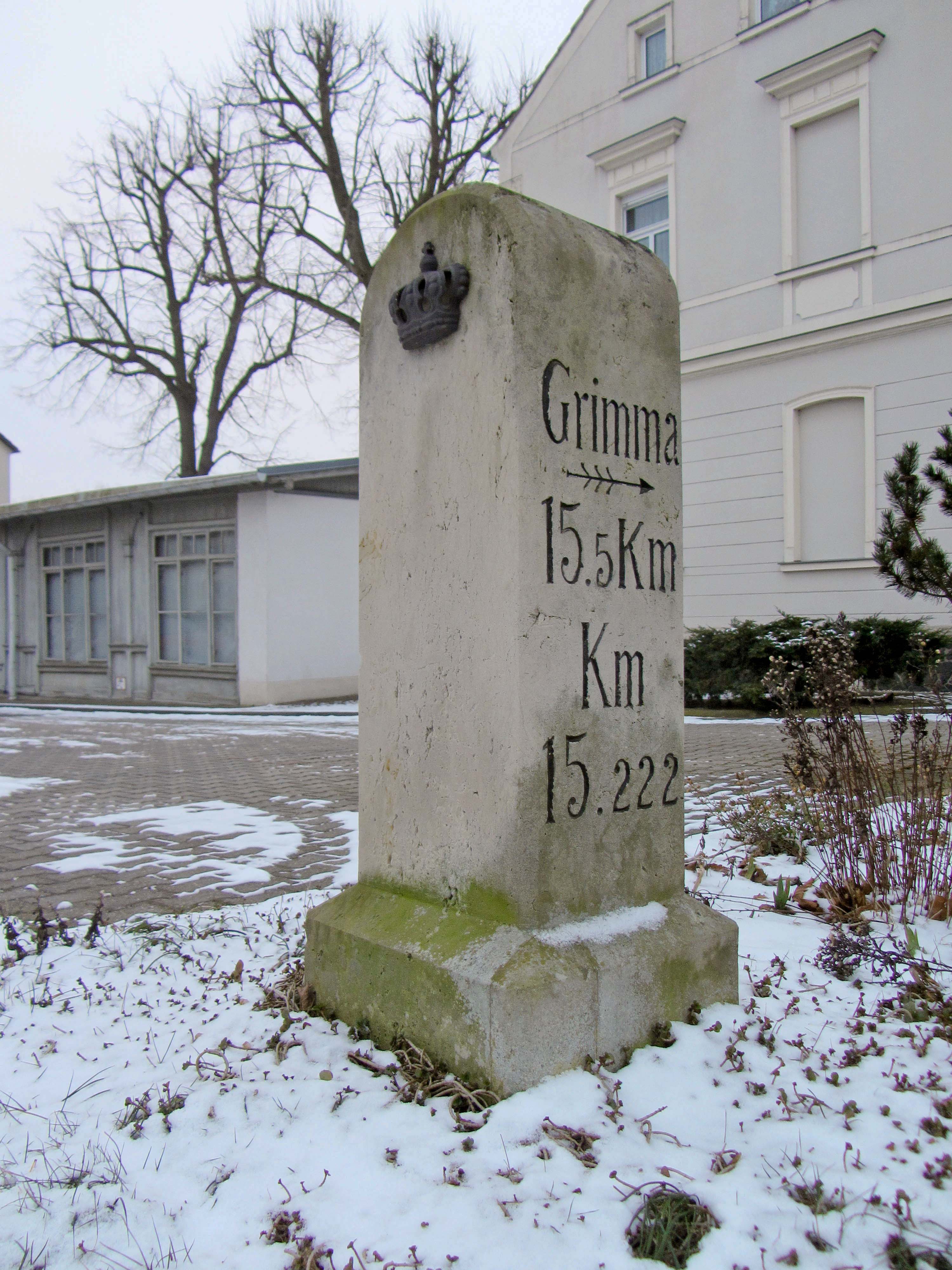 Text⧼colon⧽ Grimma 15,5 km / km 15,222 / Leipzig 25 km / Wurzen km 2.100 |