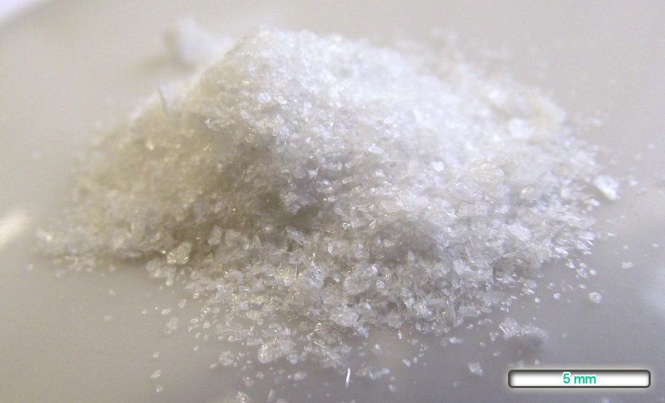 Deutsch: Photo von Benzoesäure, rein English: Photo of Benzoic acid, pure