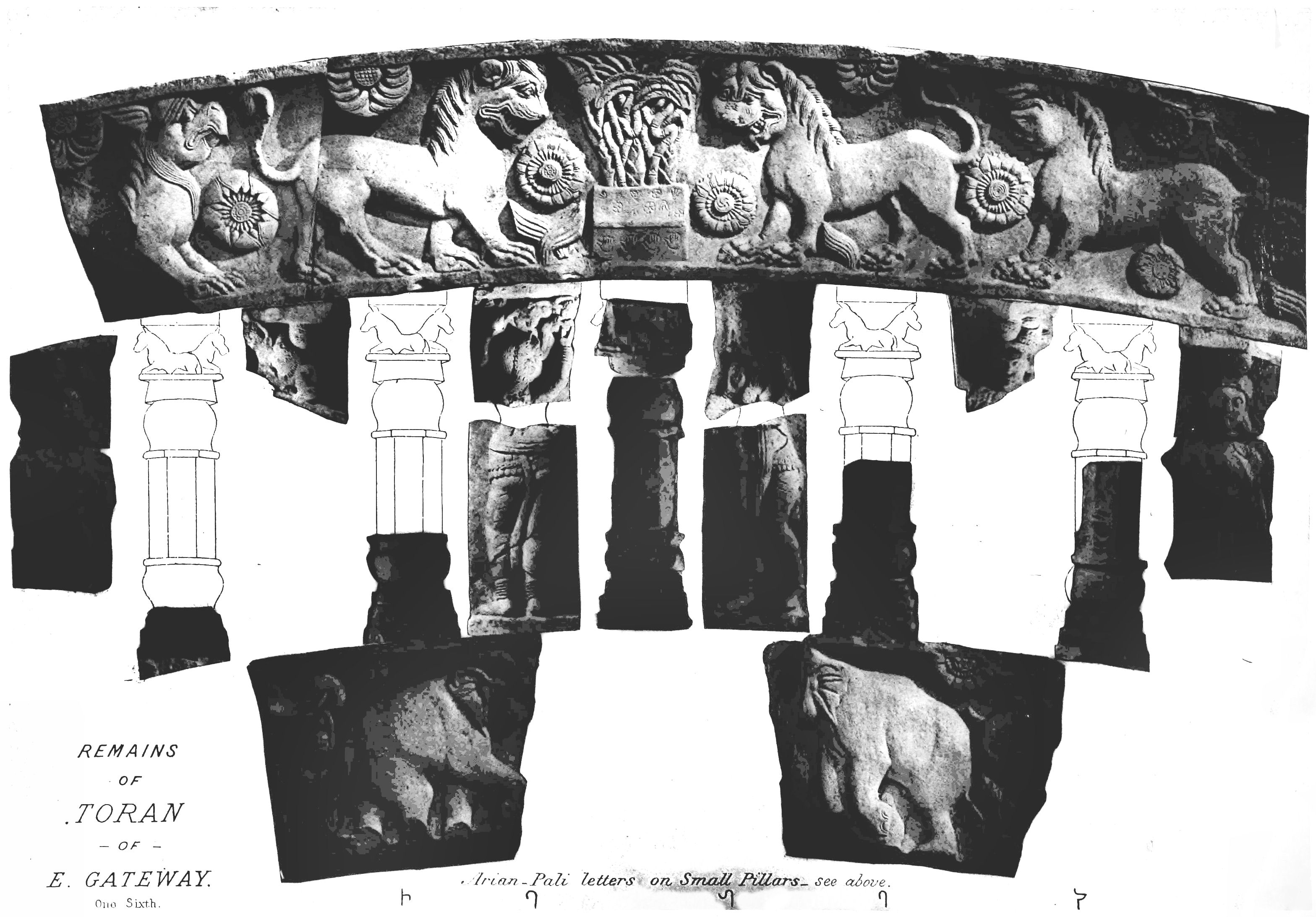 ملف:Bharhut ballustrades with Kharoshti mason marks.jpg