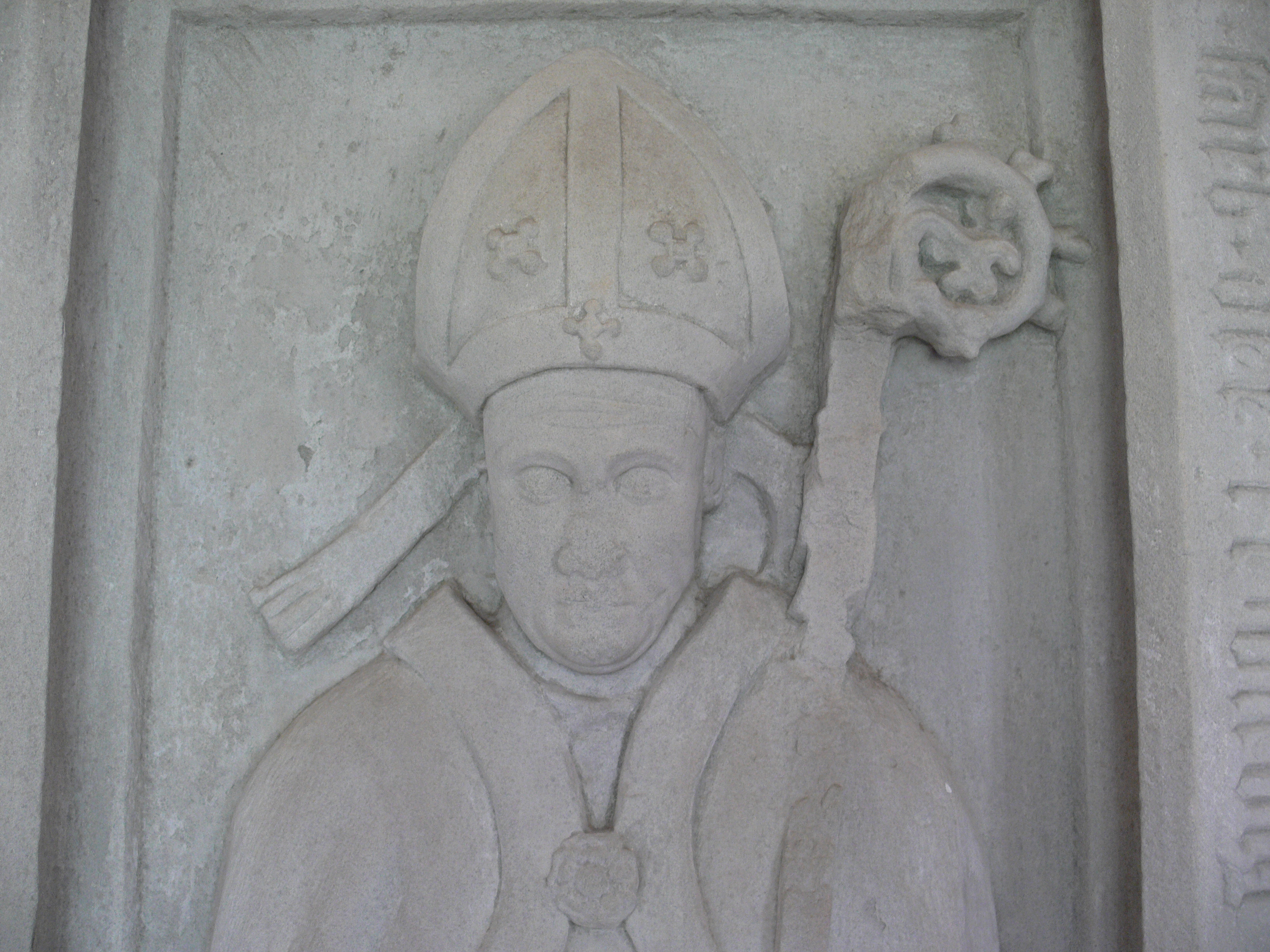 Kloster Blaubeuren, Kapitelsaal: Epitaph Anselm von Nenningen, Bischof von Augsburg, 1428, Detail |