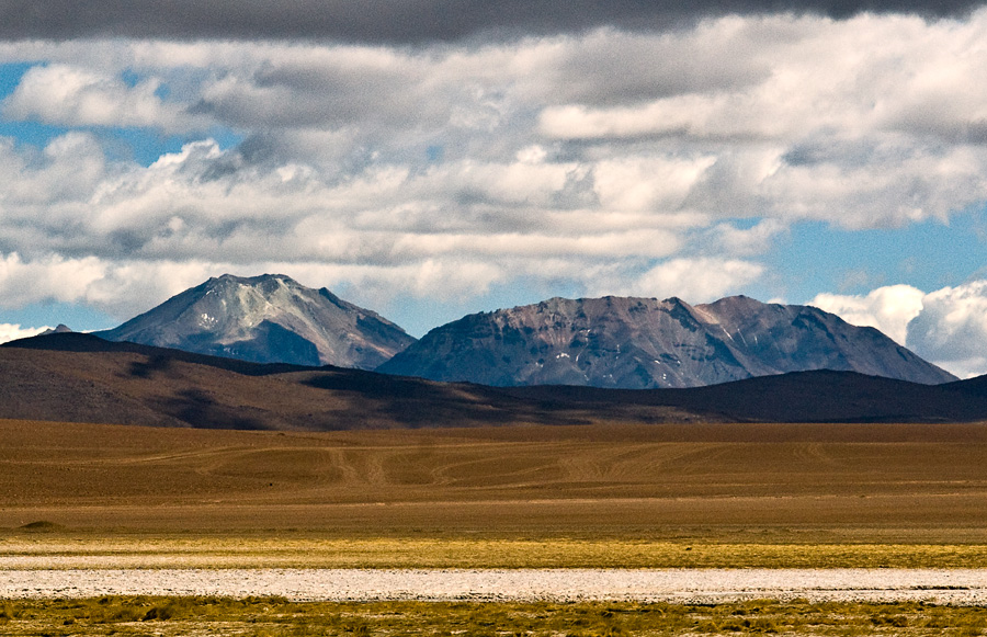 English: Cerro del Leon and Cerro Toconce, seen from the "Vado de Putana" bofedal