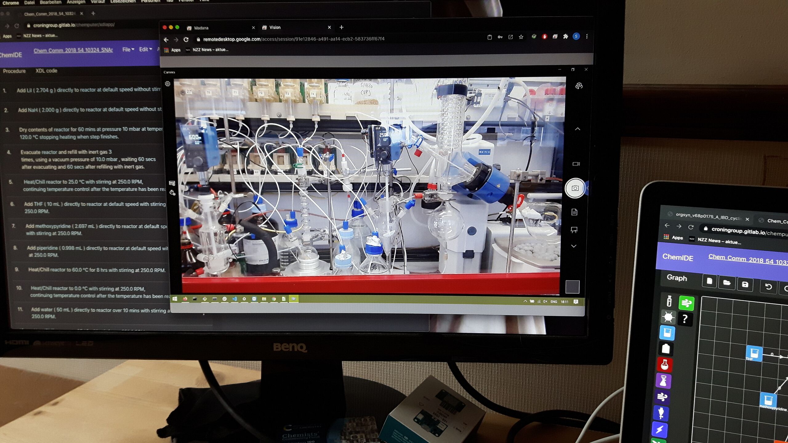 English: Remote operation of a universal chemical synthesis machine (chemputer) in Lee Cronin's lab at the University of Glasgow