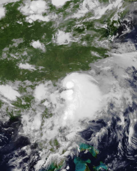 English: Newly formed Tropical Storm Colin near the South Carolina coast as captured by the GOES-16 satellite on July 2, 2022.