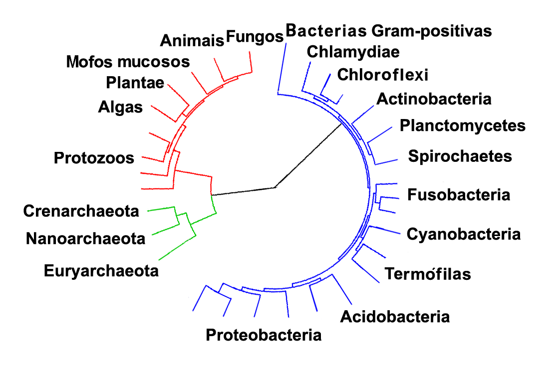 English: A highly resolved Tree Of Life, based on completely sequenced genomes [1]. The image was generated using iTOL: Interactive Tree Of Life[2], an online phylogenetic tree viewer and Tree Of Life resource. Eukaryotes are colored red, archaea green and bacteria blue. قالب:Gl