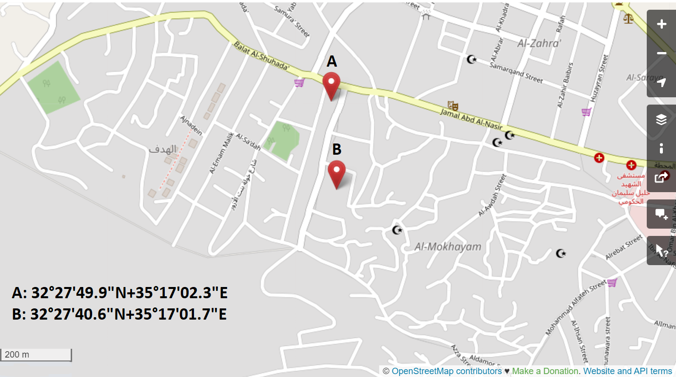 ملف:Coordinates of Shireen Abu Akleh murder.png