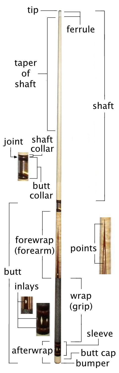 {{cite book}}:|access-date=requires|url=(help) - ^ "Cue Maker and Cues Glossary". EasyPoolTutor. 2003–2007. Retrieved 2007-12-01.