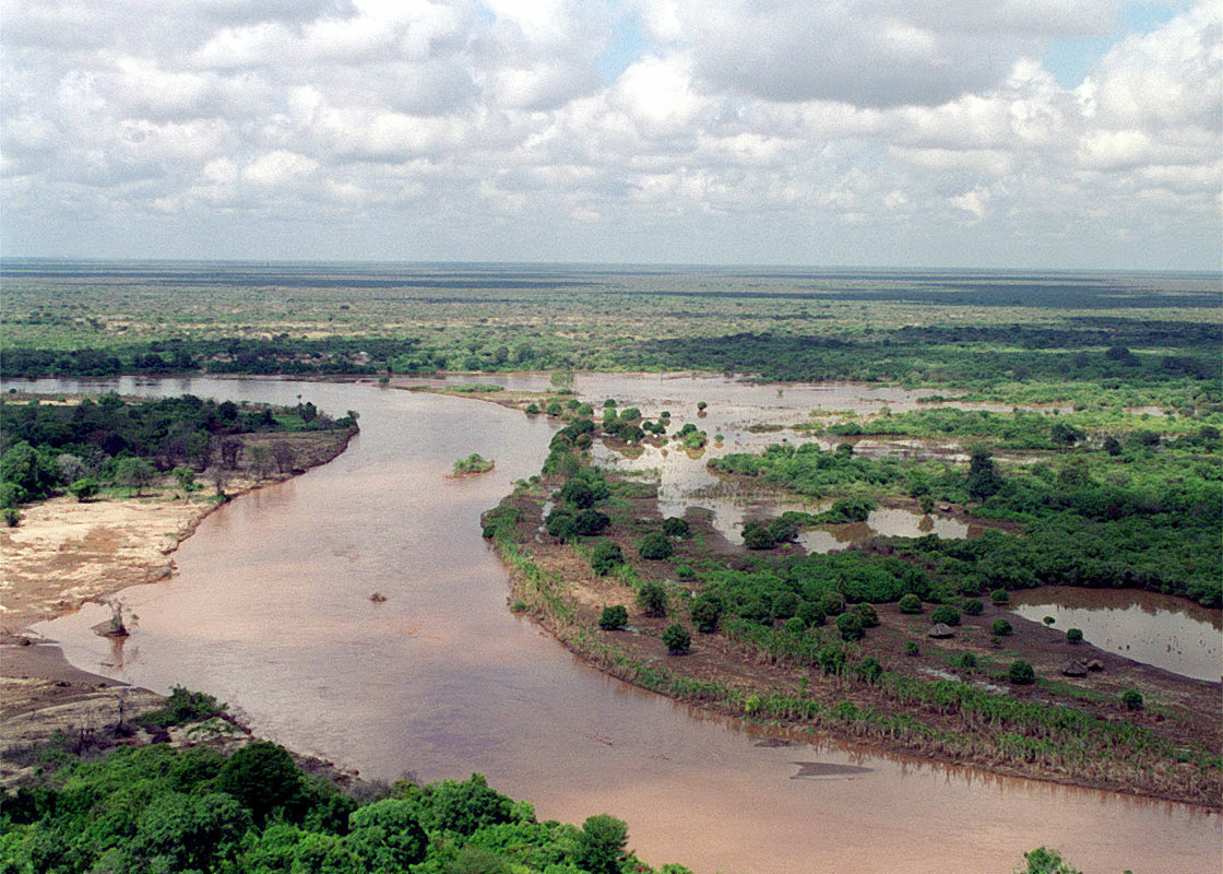 English: This aerial photograph shows the Tana river clearly flooded out of its banks in the Rift Valley area during Operation NOBLE RESPONSE '98.