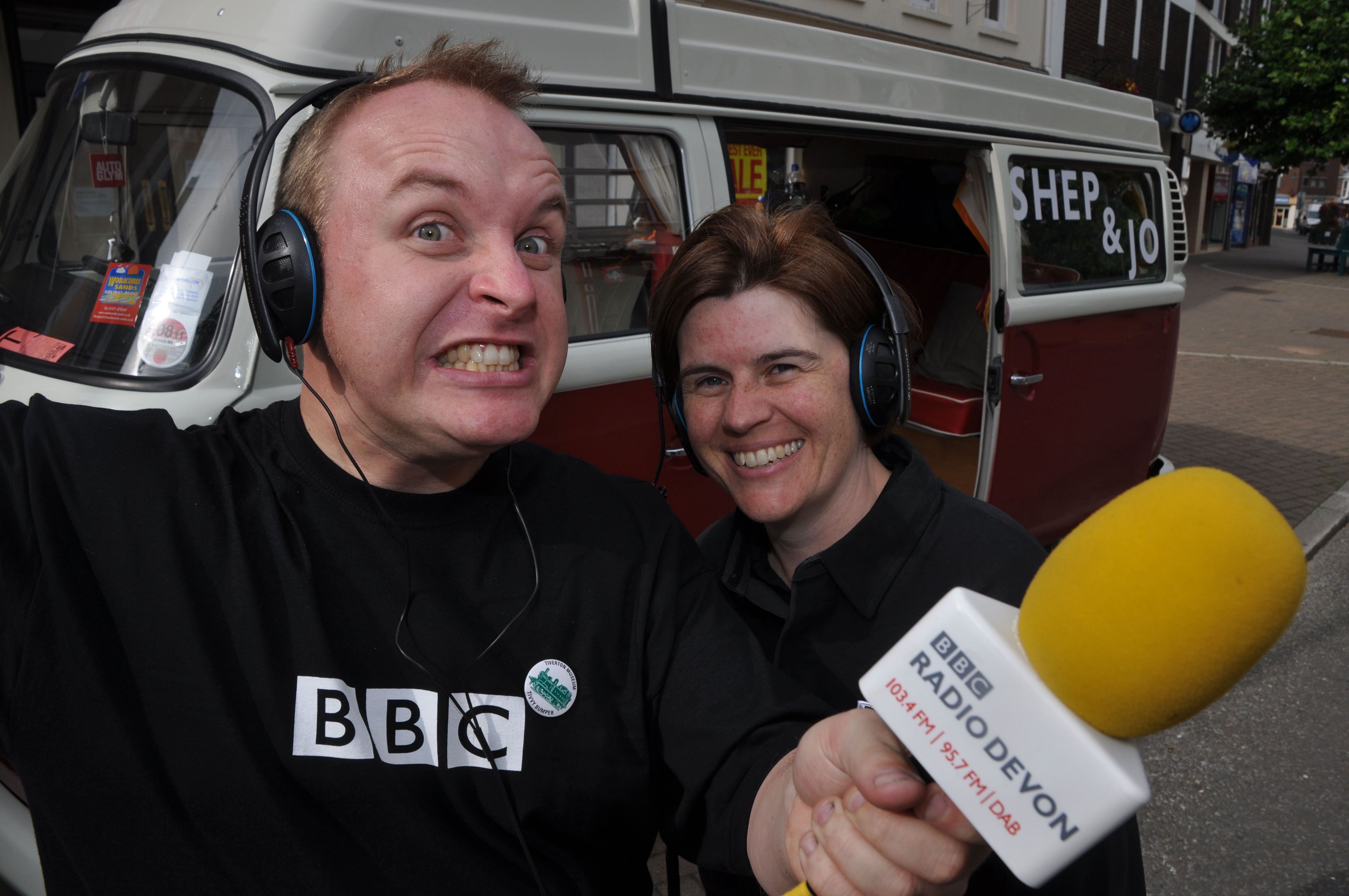 English: David Sheppard and Jo Loosemore presenting BBC Radio Devon's Shep & Jo Show