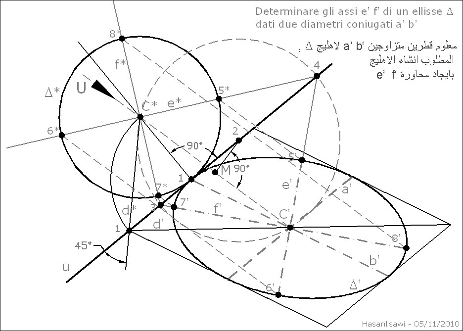 وصف: العربية: معلوم قطرين متزاوجين لاهليج المطلوب انشاء هذا الاهليج بواسطة محاورة