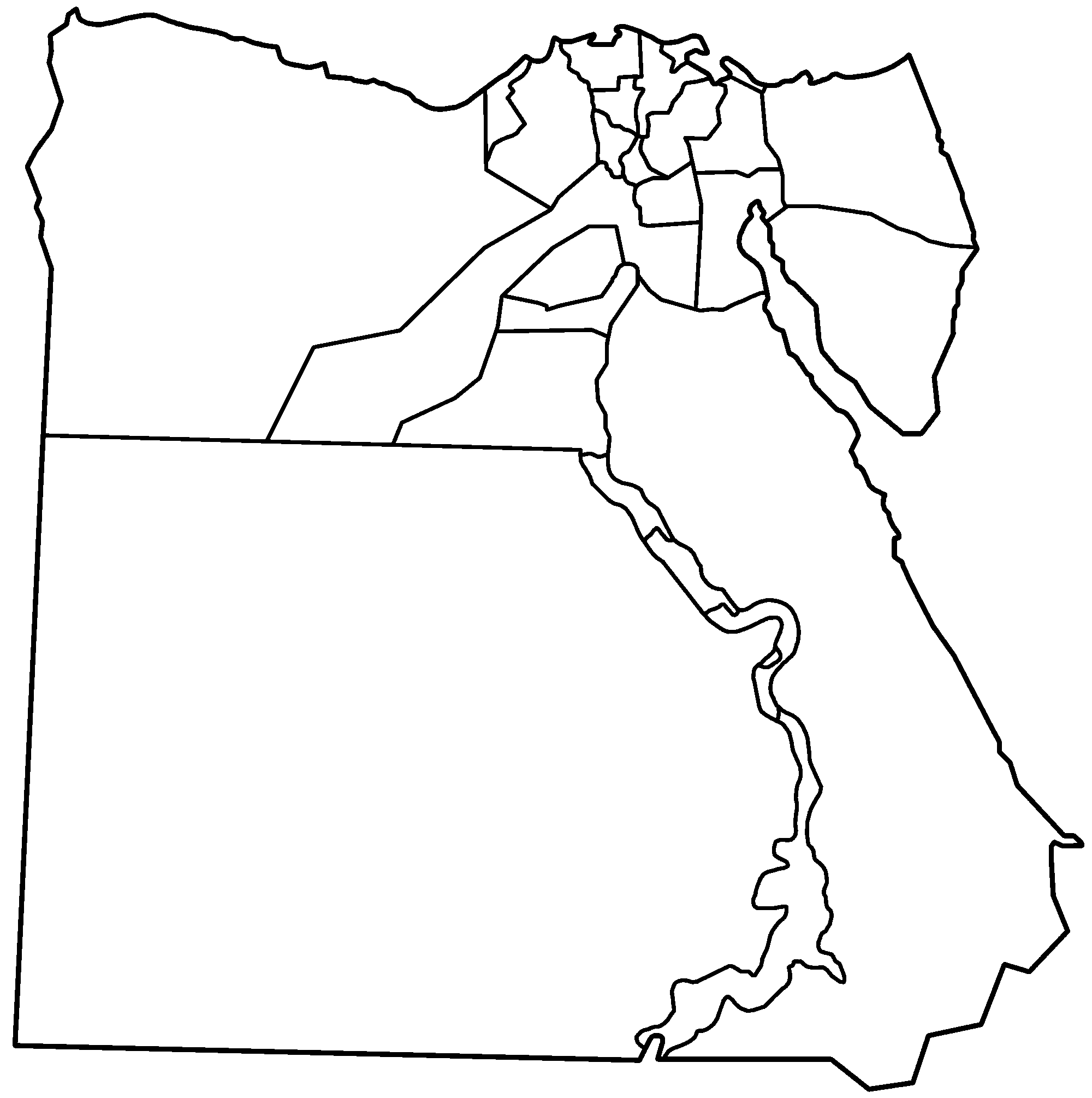 Blank map of the governorates of Egypt, useful for labelling in other languages.