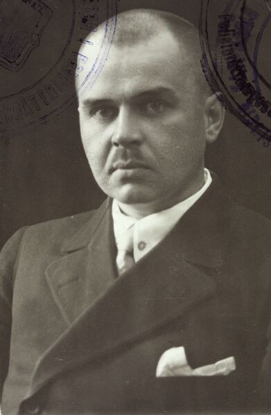 English: Passport photograph of the Finnish writer and journalist Eino Tikkanen (1889–1953).