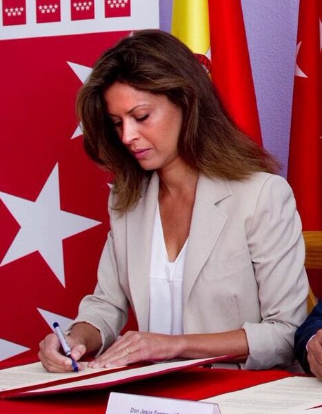 English: Elena Cue firmando Convenio entre la fundación que preside y la Comunidad de Madrid para la atención a mujeres extranjeras en riesgo de exclusión social