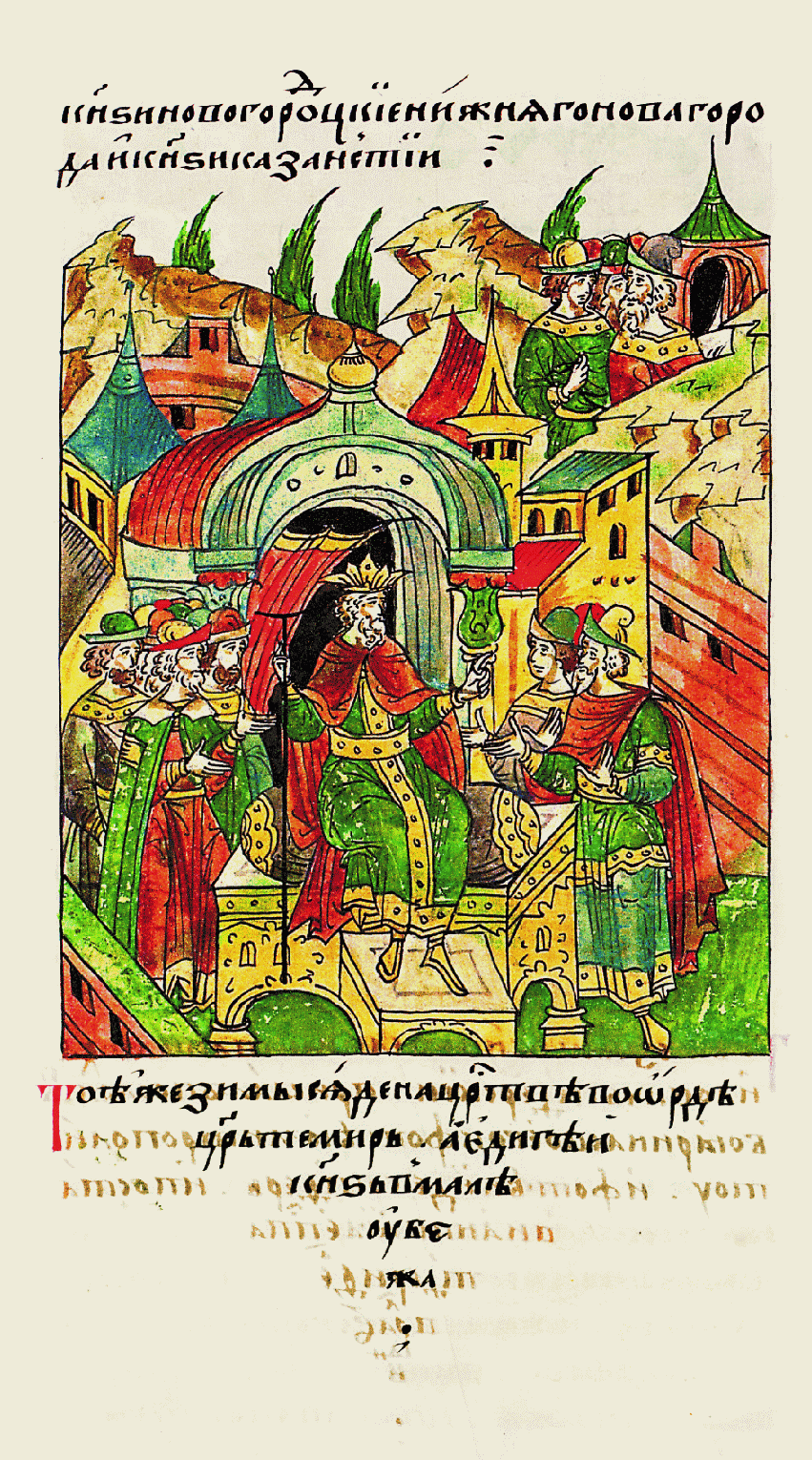 В ту же зиму стал править в Орде царь Темир, а князь Едыгей бежал. |