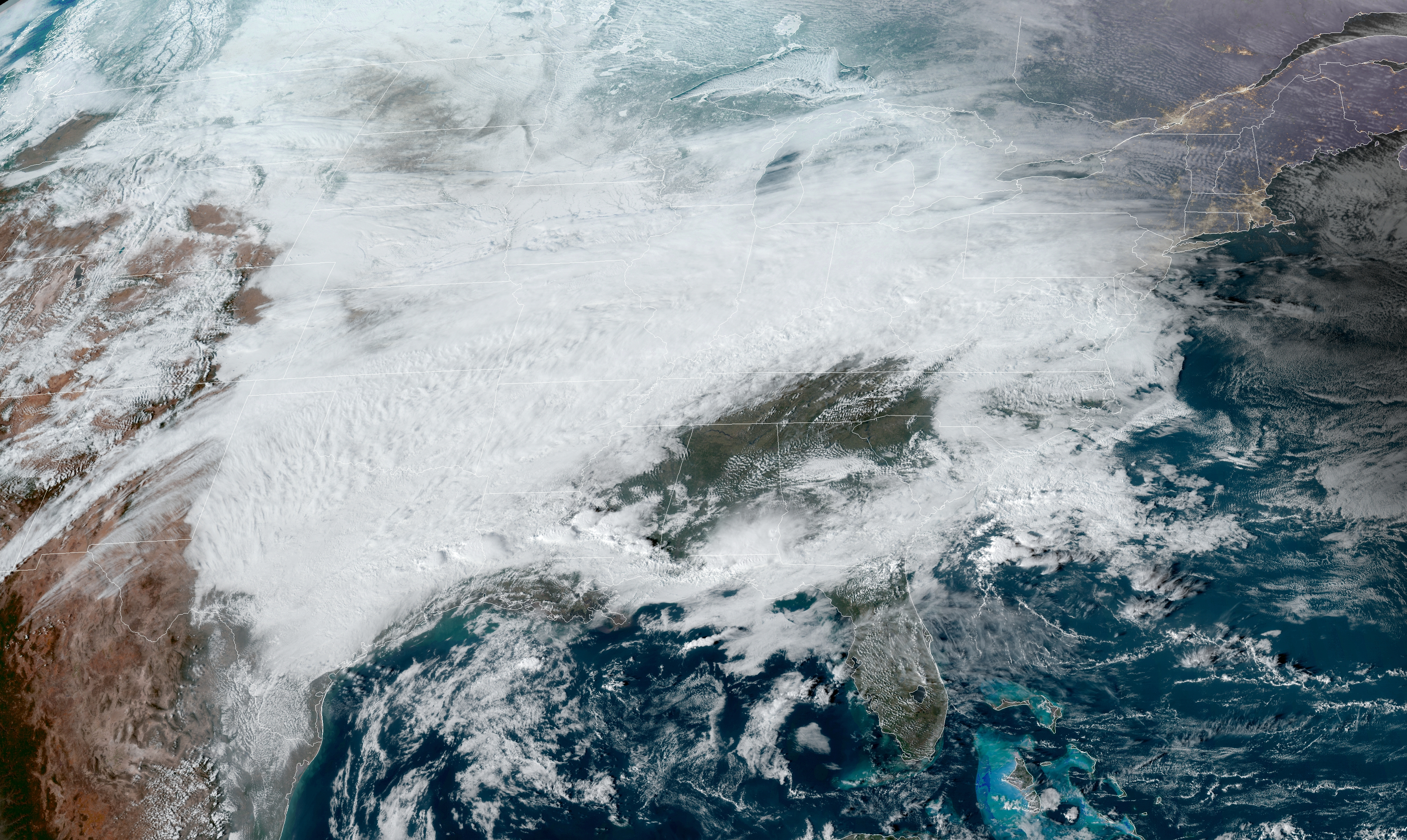 English: GOES-16 satellite imagery of the February 2021 ice storm at 21:11 UTC on February 10
