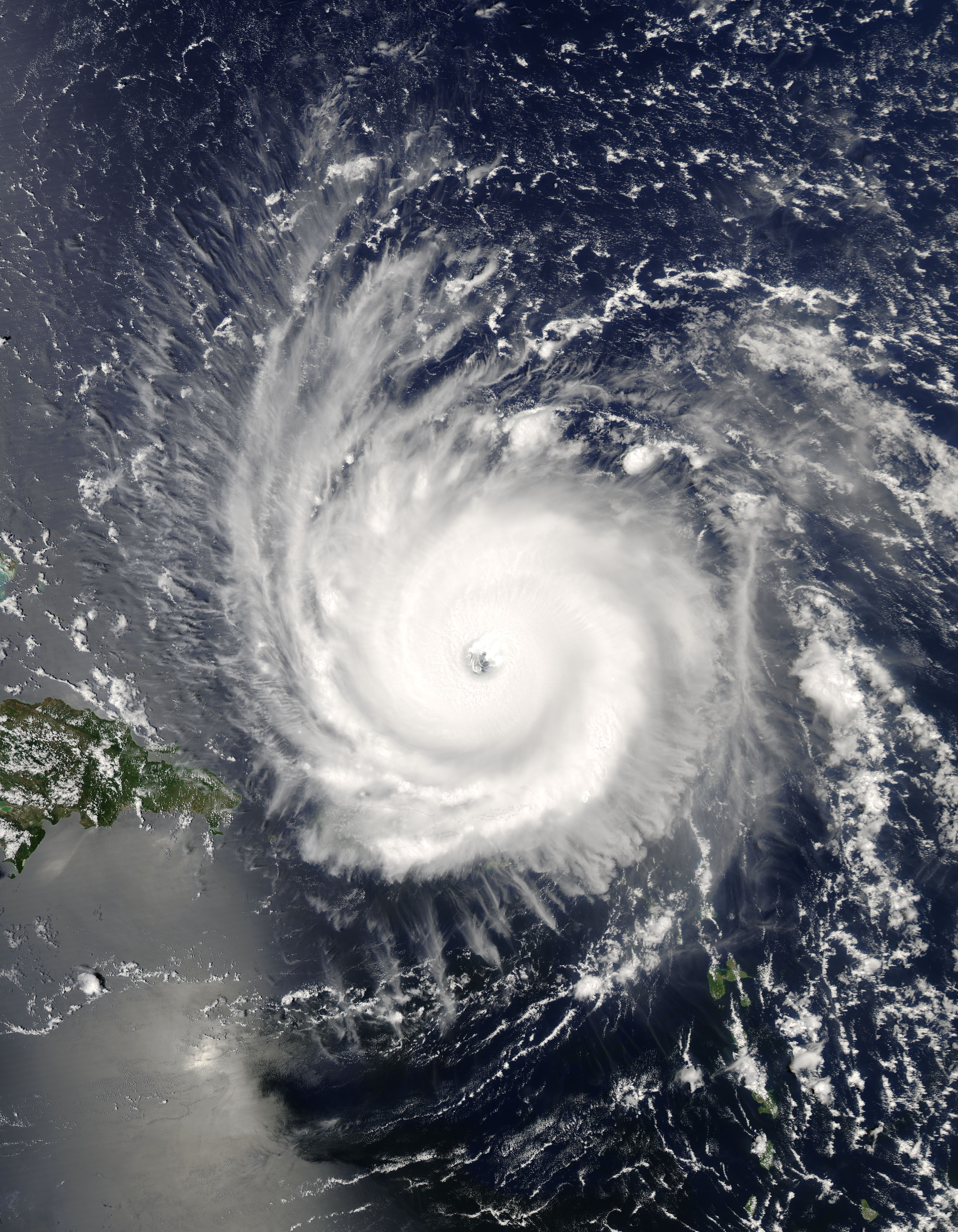 The MODIS instrument aboard NASA's Aqua satellite captured this true-color image of Hurricane Frances on August 31, 2004 at 17:55 UTC (1:55 PM EDT). At the time this image was taken Frances was located approximately 230 km (140 miles) north-northeast of San Juan, Puerto Rico and was moving towards the west near 26 km/hr (16 mph). Maximum sustained winds were near 225 km/hr (140 mph) and the storm's minimum central pressure was down to 942 millibars. The MODIS Rapid Response System provides this image at additional resolutions and formats. |