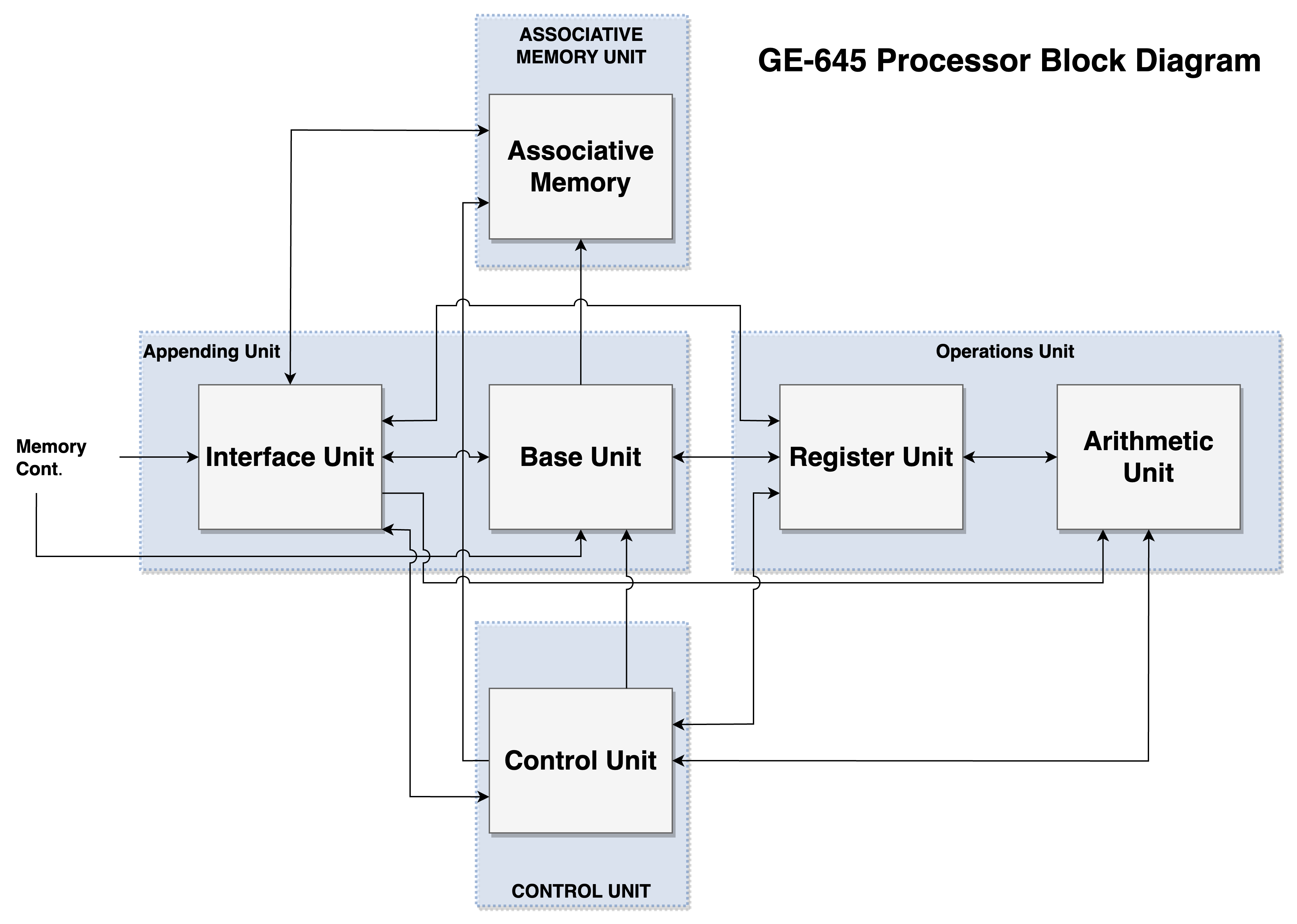 This is a reinterpretation of processor block diagram from the 645 Manual as published by Honeywell Information Systems in 1972. Created in DrawIO